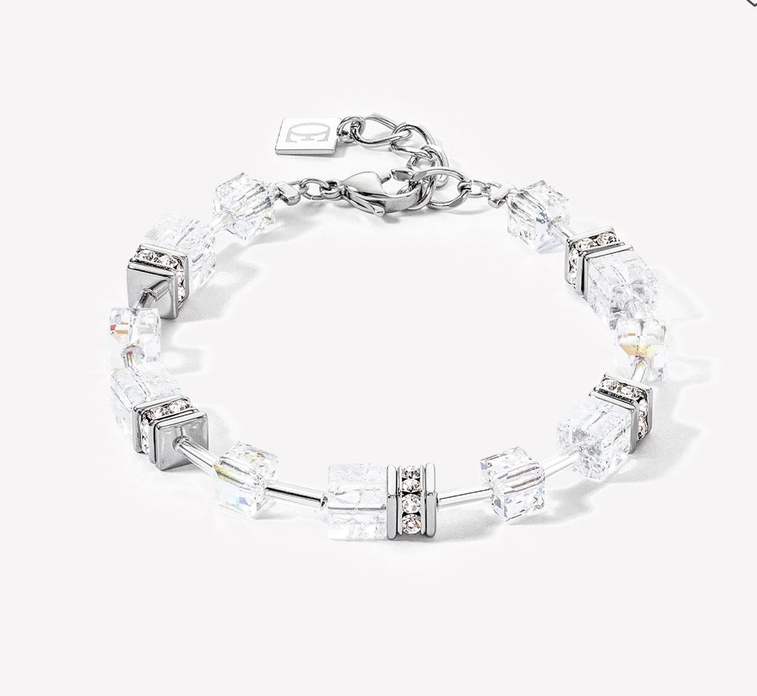 GeoCUBE® Iconic Nature bracelet silver-white: classic beauty The GeoCUBE® Iconic Nature bracelet in silver-white brings classic elegance to your wrist. With its combination of silver-coloured stainless steel, clear crystals and cracked rock crystal cubes, this bracelet is a timeless accessory that goes with any outfit. Whether for everyday wear or special occasions, this bracelet will add a subtle yet striking touch of sophistication to your style while staying on trend.