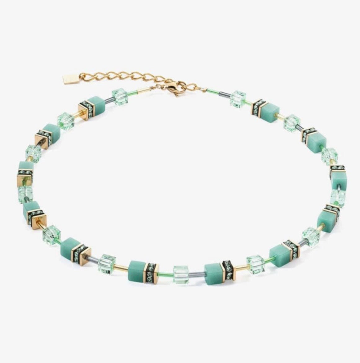 GeoCUBE Iconic Mono Gold Plated Green Crystal Necklace