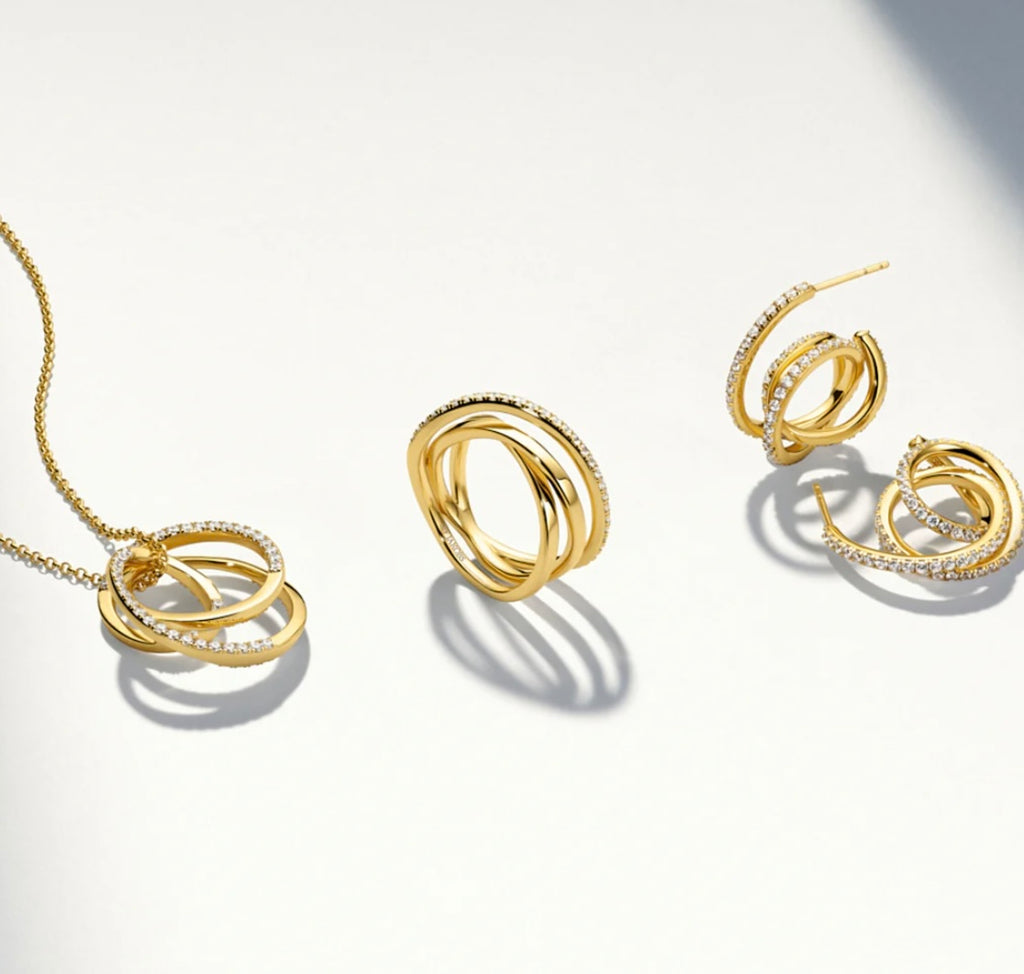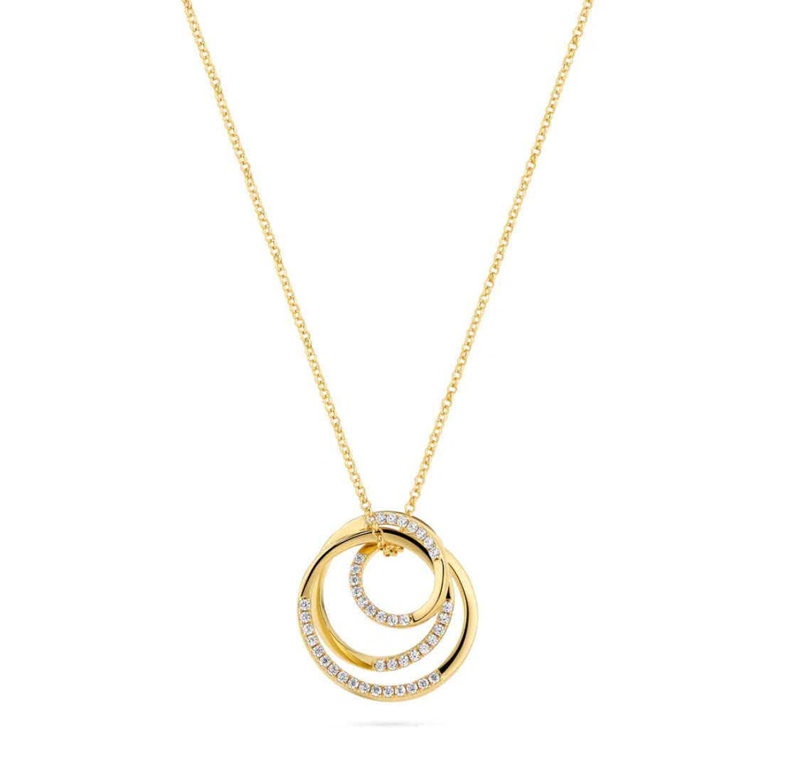 Necklace made of 18 karat gold plated 925 Sterling Silver, a polished surface, and handset with facet cut white zirconia