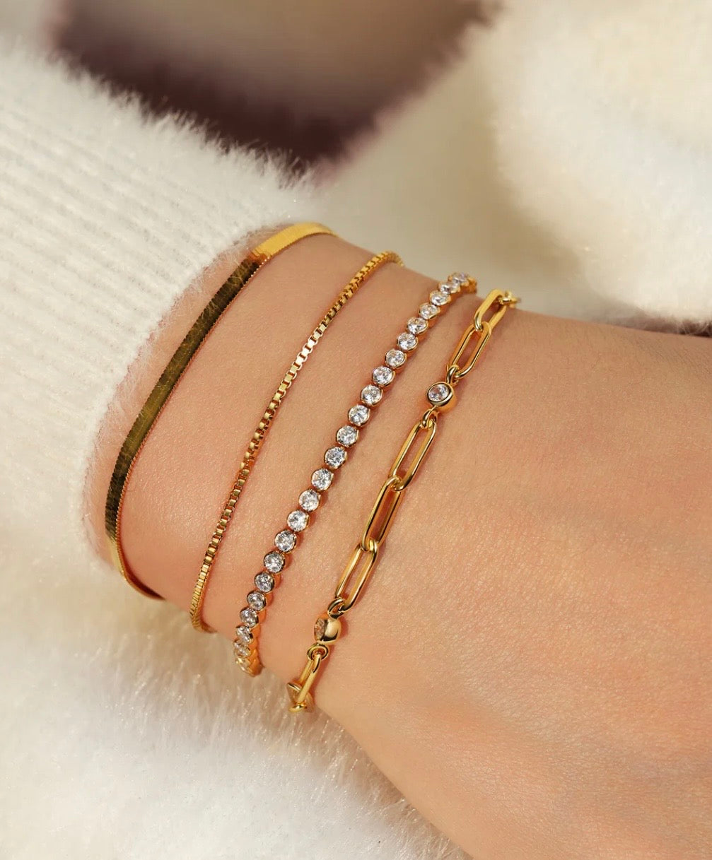 Discover a new level of playful minimalism with this station bracelet. The trending deconstructed design brings a fresh, innovative approach to the classic chain. Wear it alone for a minimalist look or layer it with other chains of different thicknesses and textures to create diverse styles.